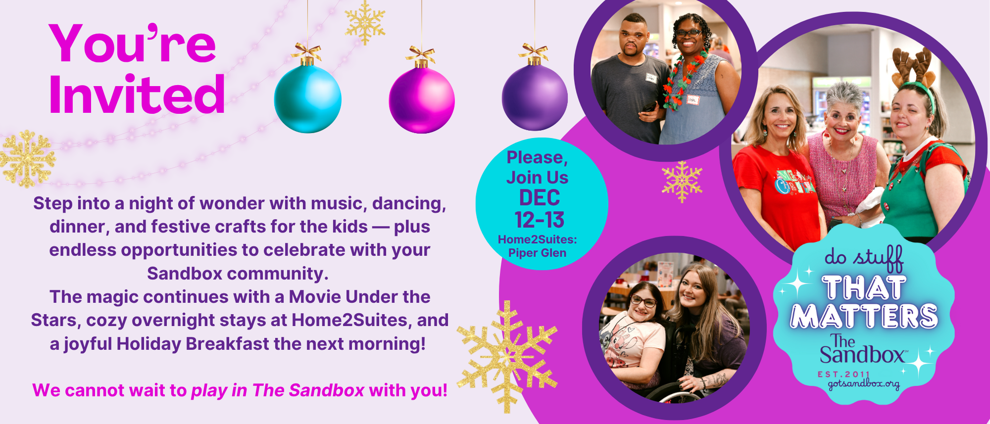 Step into a night of wonder filled with music, dancing, dinner, and festive crafts for the kids — plus endless opportunities to celebrate with your Sandbox community!